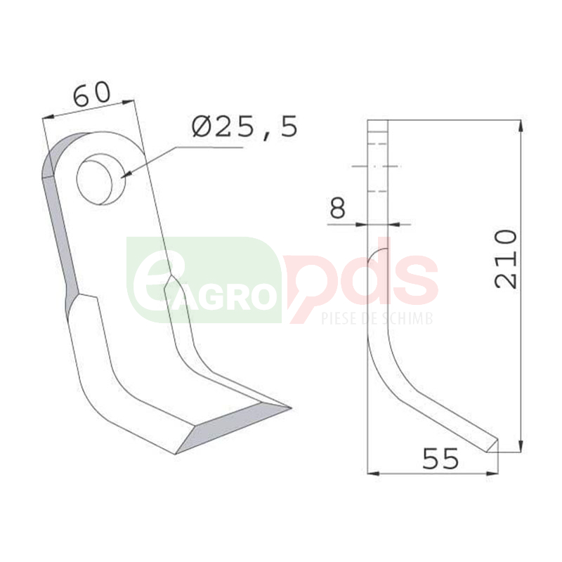 Cutit Y - 210x60x8, Ø25,5 - tocator resturi vegetale (mulcer) - Maschio Gaspardo [T40005142R]