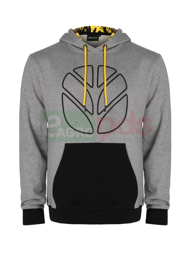 Acest hanorac este prevăzut cu buzunar tip cangur aplicat și mâneci montate, oferind o croială clasică și confortabilă. Talia și manșetele sunt finisate cu nervură 1/1 de culoare neagră, pentru durabilitate și un aspect modern. Căptușeala glugii are imprimeu pe toată suprafața, iar pe partea frontală este imprimat logo-ul New Holland. Realizat din material certificat Oeko-Tex 100, acest hanorac îmbină calitatea, confortul și sustenabilitatea. Material: 100% bumbac